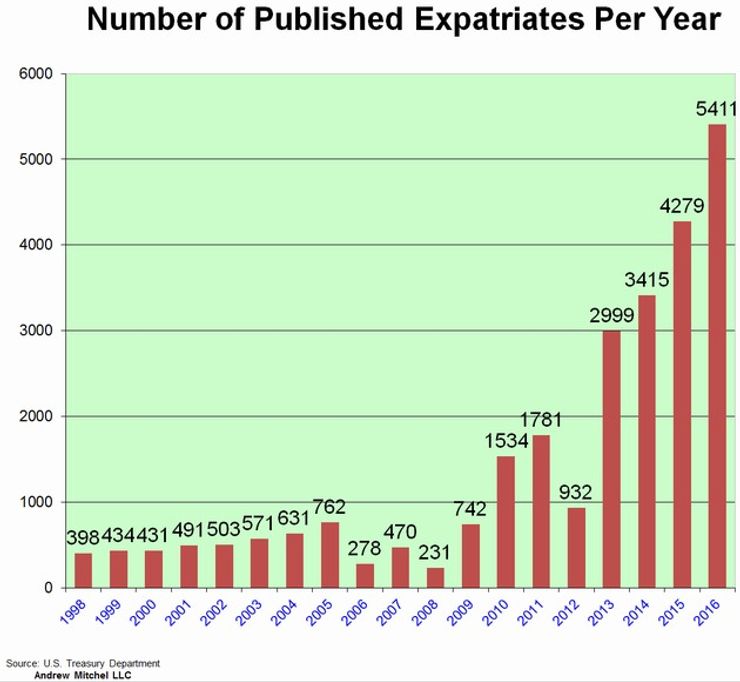 По данным источника, в прошлом году более 5400 американцев отказались от гражданства США, установив новый национальный рекорд с 26-процентным ростом отказов в сравнении с 2015-м.