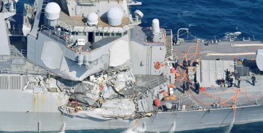 Напомним, столкновение произошло накануне в 2:30 ночи по местному времени в 100 километрах к юго-востоку от японского города Йокосука. Эсминец столкнулся с большим контейнеровозом "Кристалл", который шел под флагом Филиппин.