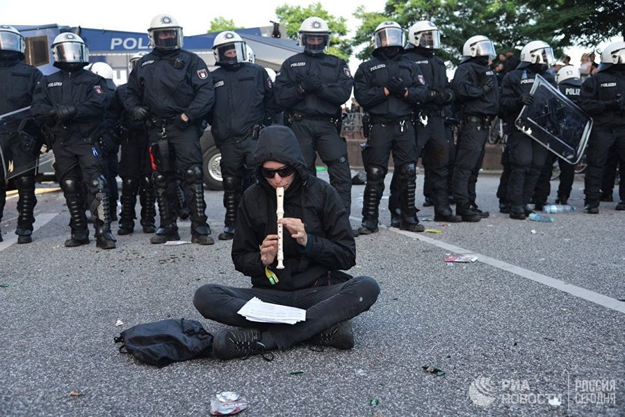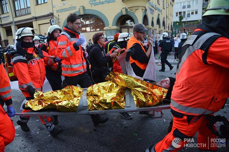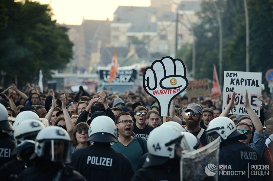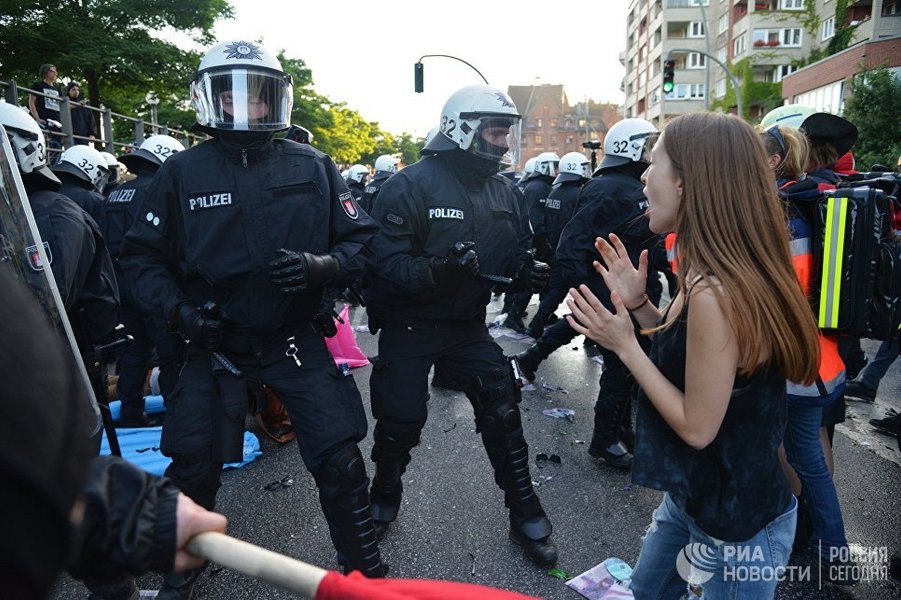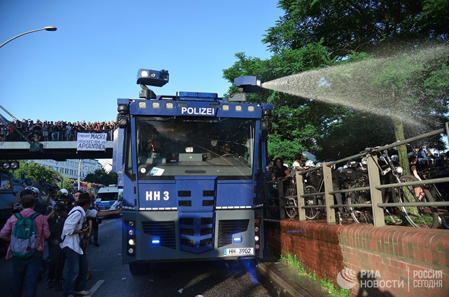 Полиция, в свою очередь, задействовала водометы для разгона протестующих у парка Альтер Эльб в Гамбурге. После применения техники часть протестующих разбежалась, а оставшиеся ведут себя мирно.