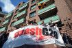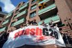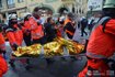После столкновений с полицией некоторые демонстранты забрались на ограждение. Оно рухнуло, и люди упали с высоты четырех метров, 11 человек получили тяжелые ранения, еще у троих легкие травмы.