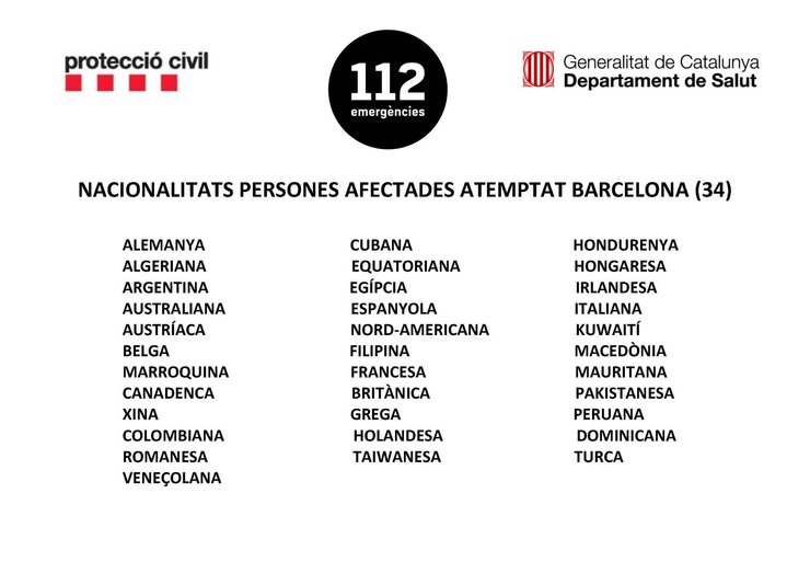 Граждане 34 стран погибли или получили ранения в результате терактов в центре Барселоны и в курортном городе Камбрильс.