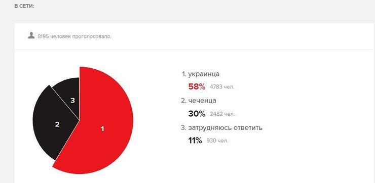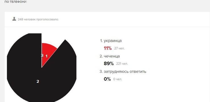89% пользователей, которые голосовали с телефона, указали, что опасаются чеченца, 11% - украинца. Всего с мобильных устройств проголосовали почти 250 человек.