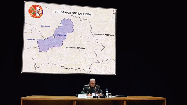 Глядя на сценарий учений, напрашивается сравнение Вейшнории и "ДНР" как сепаратистских анклавов, созданных извне. Но белорусские военные то ли намеренно, то ли случайно этот момент пояснять не стали. Пока что Вейшнория представляется как выдуманное государство, расположенное на территории Беларуси. Отрабатывать будут его блокировку и оборону от наступления.