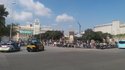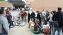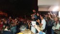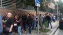Люди поют L"Estaca на площади перед Кафедральным собором Барселоны