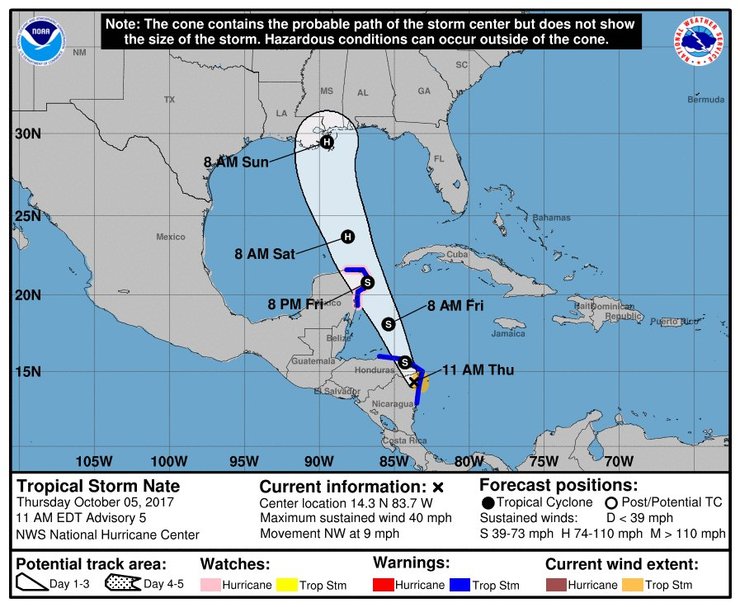 Новый тропический шторм "Нейт" достигнет побережья Соединенных Штатов Америки 7-8 октября 2017 года. Об этом сообщает CNN, ссылаясь на пресс-службу Национального центра ураганов США, передает РБК-Украина.