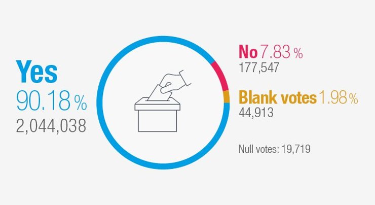 По информации каталонской власти, более 90% избирателей высказались за независимость от Испании.