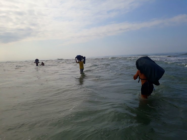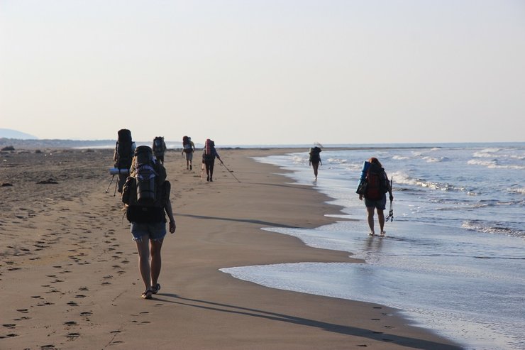 А оно всегда было рядом. И всегда было разным. И до него следовало дойти. Море было как приз. В конце дня. Море было с закатами под Стинга и рассветами под "Валим наметы!". Море было с запахами сосен и потрясающей каши из булгура. Море было с волнами, которые расступались перед тобой в лагунах, что выбрались исключительно из соображения: "Здесь бирюза бирюзовее, чем в той", и волнами, которые захлестывали тебя (например, в Патаре), когда пришлось переходить его вброд (там река втекает в него, из-за чего одна часть воды пресная, а другая соленая), водрузив рюкзак на голову. Море было всегда. Но до него надо было дойти.