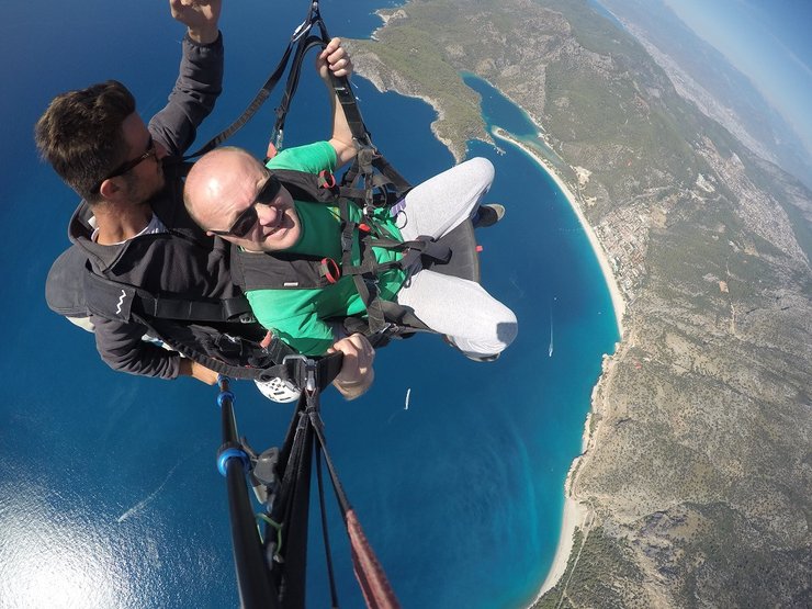 А однажды я уже сам хохотал до слез. Дело было не в горах и не в песках, и не на пляже, а в небе — под куполом парашюта. И дело это называлось "параглайдинг". Итак, сзади меня сидит турок-инструктор, который попросил называть его Оззи. И гордо показал тату со столь милым моему сердцу в 17-летнем возрасте Осборном. Я попросил называть себя Костей, но тату со столь милым моему сердцу в том же возрасте Кинчевым не показал, потому что его у меня нет.