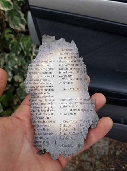 Кусочек страницы, который Дэйв Хэддокс нашел за полмили от пожара