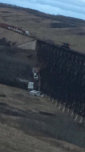 Во время другой аварии, случившейся в 200 км к востоку от столицы провинции города Эдмонтон, пять вагонов сорвались с обрыва и пролетели несколько десятков метров до дна ущелья.