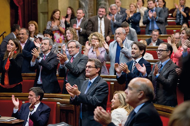Все уже было. Глава Каталонии Артур Мас и депутаты парламента приветствуют решение о проведении референдума в автономии, 27 сентября 2012 года