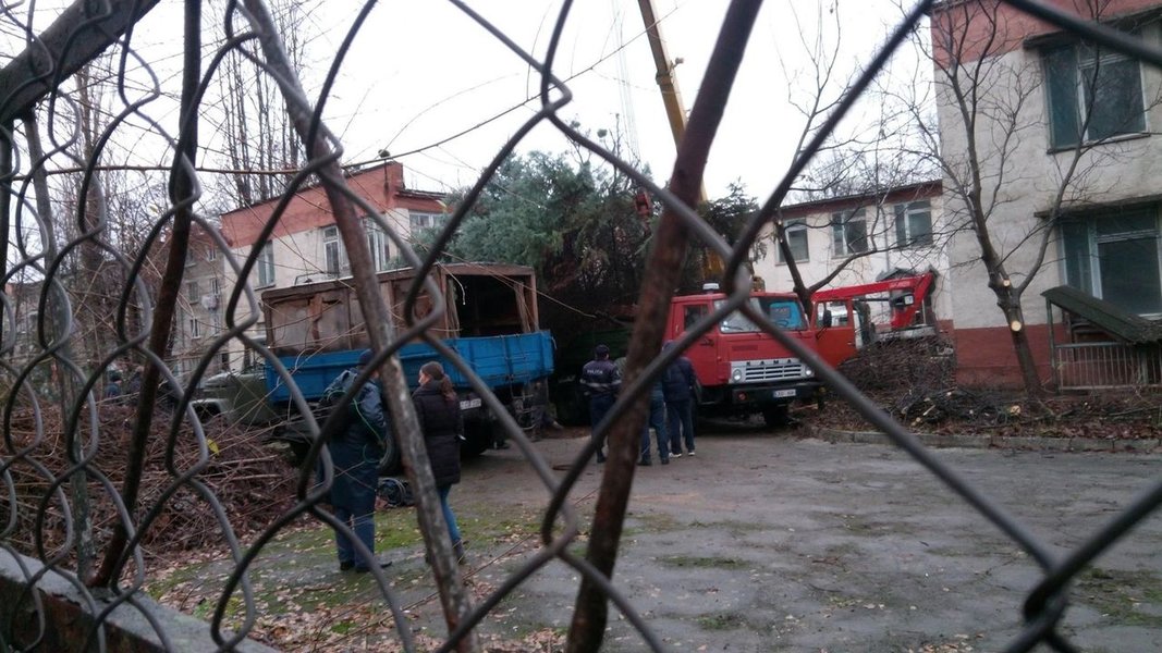 В Кишиневе "голую" новогоднюю елку заменили деревом, срубленным на территории детсада