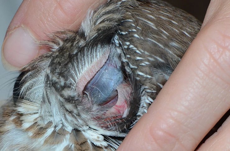Как и все птицы, совы не имеют внешних структур уха. У птиц уши выглядят как отверстия в черепах, плотно прикрытые перьями.