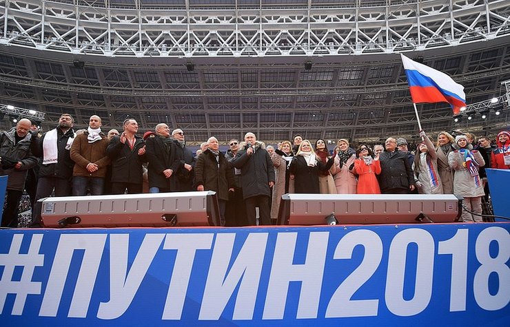 На московском стадионе "Лужники" состоялся митинг в поддержку кандидата в президенты России Владимира Путина.