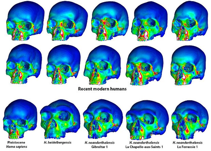 Результаты компьютерного моделирования показали, что прикус у неандертальцев был не сильнее, чем у некоторых современных людей. В тоже время объем носовой полости у неандертальцев был на треть больше, чем у сапиенсов и почти на 40 % больше, чем у гейдельбергских людей. Кроме того, строение носовых ходов, по-видимому, позволяло неандертальцам не только эффективнее согревать и увлажнять воздух, но и "прогонять" через них вдвое больший объем воздуха.