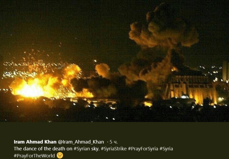Кроме того, очевидцы ракетного удара коалиции публикуют в социальных сетях фотографии события.