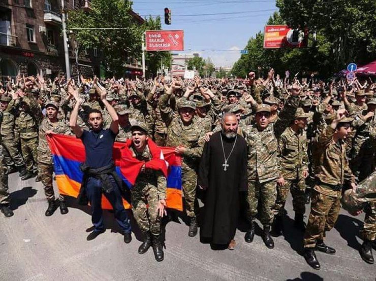 По данным издания, среди них присутствуют ветераны апрельского конфликта 2016 года в Нагорном Карабахе, а также миротворцы-контрактники. Они присоединились к демонстрантам, и встали во главе шествия по центральным улицам Еревана в качестве живого щита.