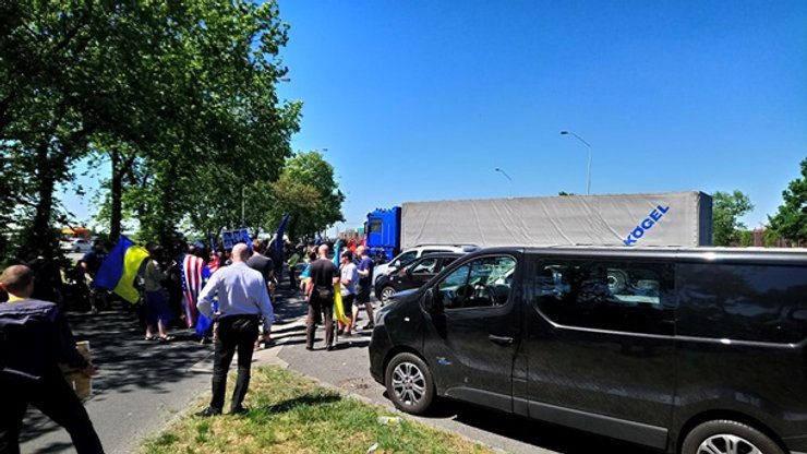 На подъезде к Праге в понедельник, 7 мая, активисты заблокировали проезд участникам российского байкерского клуба "Ночные волки", глава которых является приближенным к российским властям.