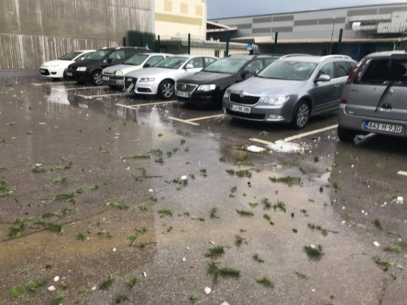 В Словении прошел гигантский град. Куски льда размером с теннисный мяч помяли множество автомобилей и пробивали крыши домов.
