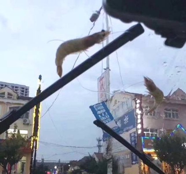В китайском городе Циндао из-за сильного шторма в Желтом море пролился дождь из креветок и морских звезд.