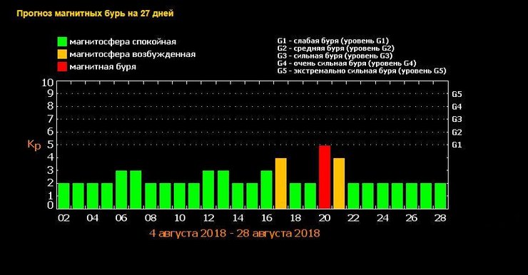 Также 17 и 21 августа ожидаются магнитные возмущения.