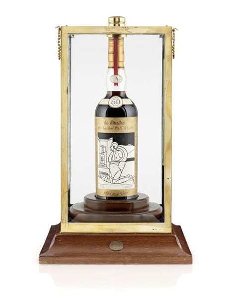 Бутылка шотландского виски 60-летней выдержки Macallan выставлена на аукцион Bonhams. Алкогольный напиток предварительно оценен в 700-900 тысяч фунтов ($889 тысяч – более $1,1 млн).