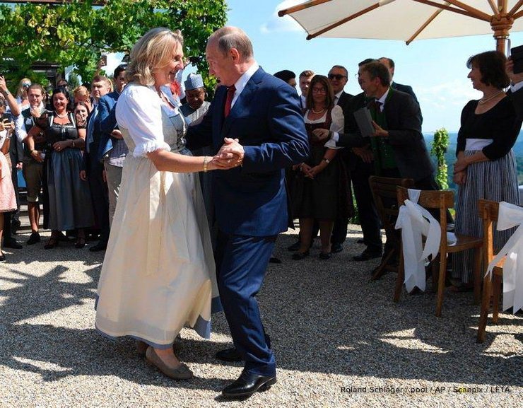 Президент России Владимир Путин прибыл на свадьбу к министру иностранных дел Австрии Карин Кнайсль.