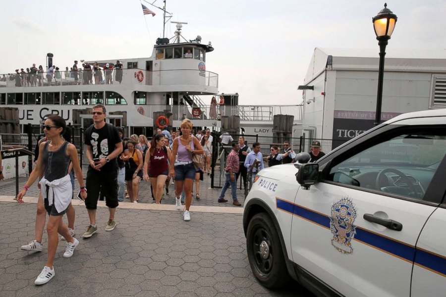 Посетителей эвакуировали паромами на остров Эллис, ближайший к острову Свободы.