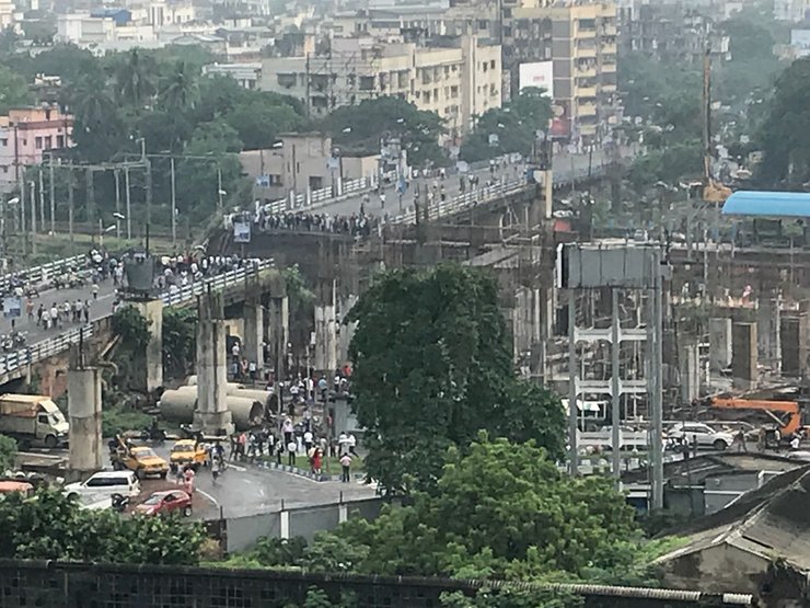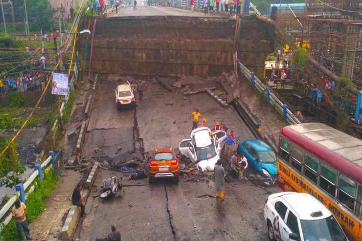 В южных предместьях Калькутты (провинция Западная Бенгалия, Индия) обрушилась секция автомобильного моста, соединяющего разные части города. Об этом сообщает News 18.