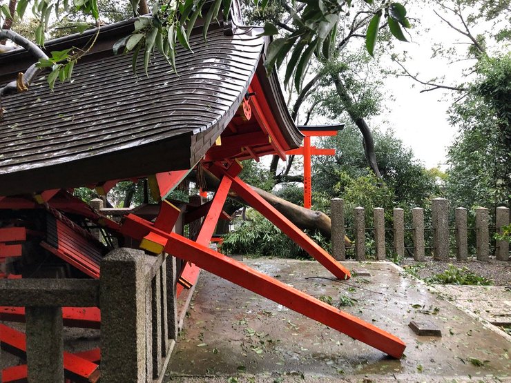 В Киото и Осаке сильный ветер и упавшие деревья повредили несколько старинных храмов.