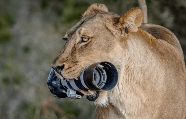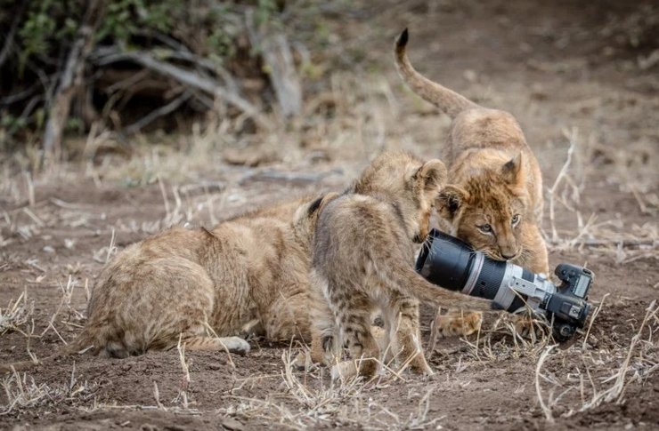 Львица украла у фотографа камеру и принесла своим детям как игрушку