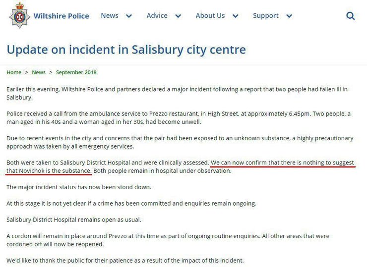 "Теперь мы можем подтвердить, что нет причин предполагать, будто "Новичок" был веществом, задействованным в этом деле", - отметили в полиции.
