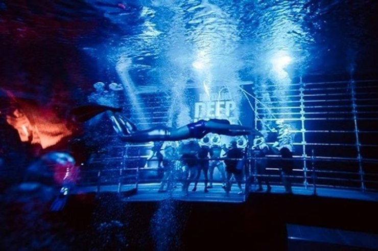 В воде была создана подводная акустика, а для посетителей играли диджеи из Британии и Германии. Музыканты находились на дне в прозрачном тоннеле.