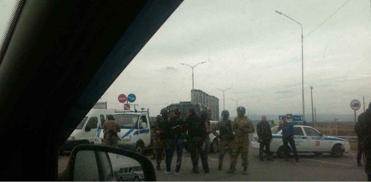 В Магасе пропал интернет, начались перебои с мобильной связью. На площадь Алания у здания администрации главы республики участники митинга пройти не смогли, улицы заблокировала полиция. Тогда митинг организовали в квартале от площади.