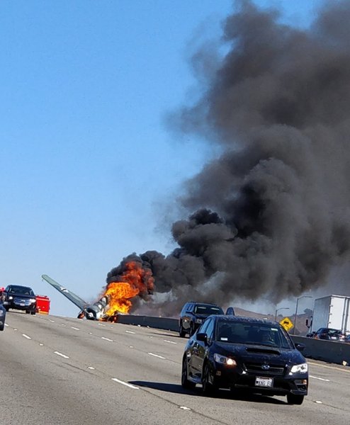 Трассу перекрывали, пока спасатели не потушили пожар. В полиции уже выяснили, что самолет принадлежал историческому обществу Condor Squadron, которые часто инсценируют воздушные бои на авиашоу.