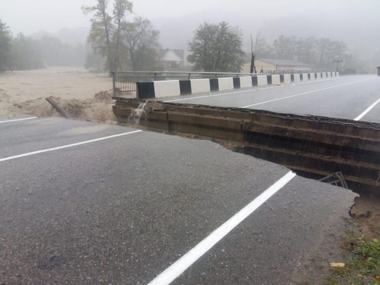 Некоторые дороги закрыты, с гор сошли селевые потоки. В населенном пункте Цыпка обвалился мост, который недавно восстановили после разрушительного потопа 2010 года.
