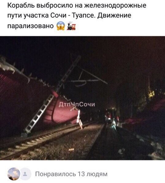 Также местные жители пишут, что потоками воды на железнодорожные пути вынесло корабль.