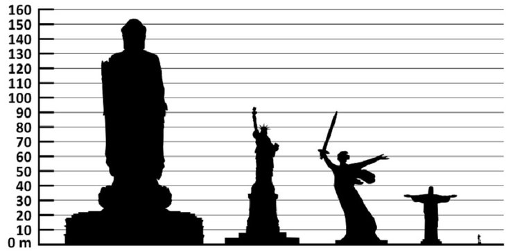 Новый монумент выше, чем статуя Христа в Бразилии (38 м) и статуя Свободы в США (93 м), его высота составляет 182 м.