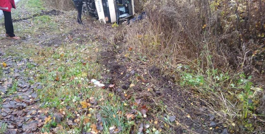 Сегодня в Тернопольской области около 14:00 рейсовый автобус BAZ съехал на обочину и перевернулся. Водитель погиб.