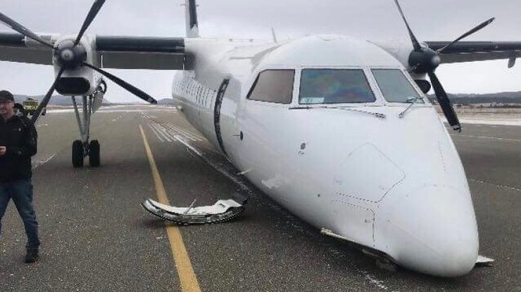 Инцидент произошел в аэропорту Дир Лейк канадского города Стивенвилль. При посадке у самолета местной авиакомпании не сработало переднее шасси. Люди на борту не пострадали. Об этом сообщает местный телеканал CBC.