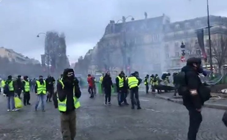 В Париже полиция применила слезоточивый газ против участников демонстрации на Елисейских полях, которые приблизились к закрытой для протестов зоне на площади Согласия. Об этом в субботу, 24 ноября, cообщает телеканал BFMTV.