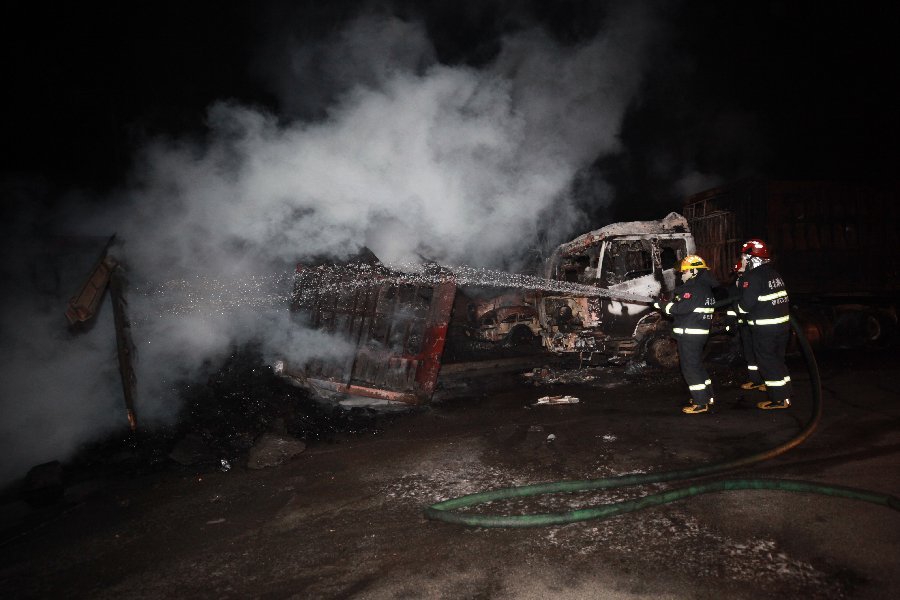 Взрыв был такой силы, что в жилых зданиях неподалеку повылетали окна. Волна пламени уничтожила 38 грузовиков и 12 легковых машин. Люди, которые были внутри, скорей всего погибли.