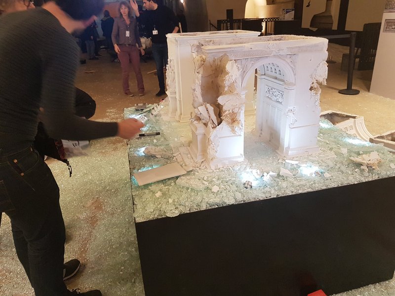 Так называемые "желтые жилеты" разрисовали сооружение граффити внутри и снаружи. Облили несколько скульптур краской. Разбили информационные стенды и технику и даже проломили несколько перегородок.