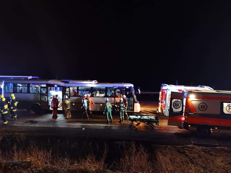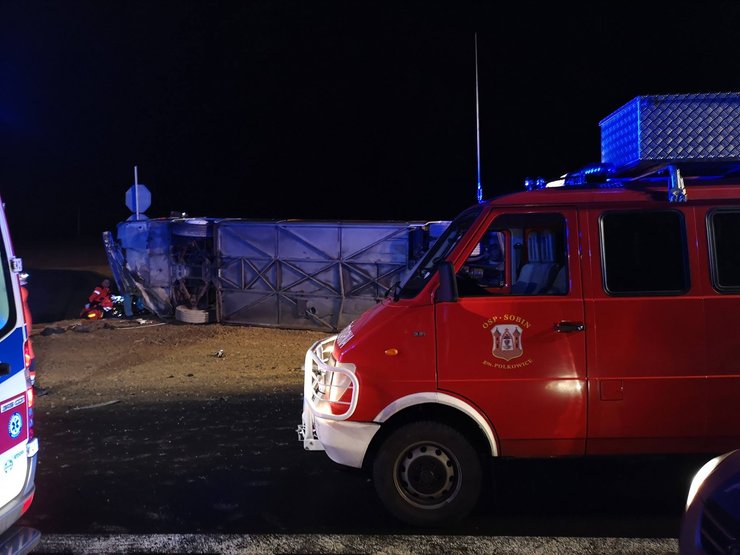 Автобус ехал с ярмарки во Вроцлаве. По предварительным данным водитель потерял управление во время торможения. Автобус понесло, и он не удержался на дороге. Опрокинулся и упал в кювет.