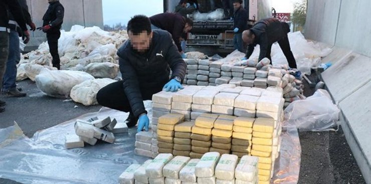 1 тонну 271 килограмм героина нашли правоохранители при помощи специально обученных собак в грузовике-рефрижераторе. Наркотик был спрятан среди мороженых туш. Операцию провели 6 декабря. Об этом пишет TRT Haber.