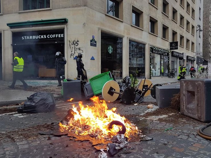 Как пишет EHA News, изрядная напряженность отмечена на парижских Больших бульварах, где к полудню были возведены баррикады и произошли столкновения.