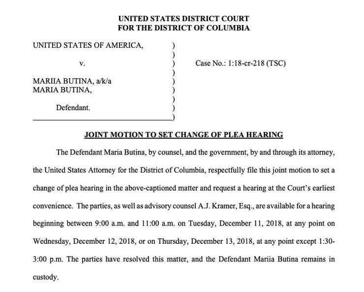Копию ходатайства о новом заседании в суд округа Колумбия, на котором она сможет признать вину, опубликовал в своем Twitter корреспондент Politico Кайл Чини (Kyle Cheney).