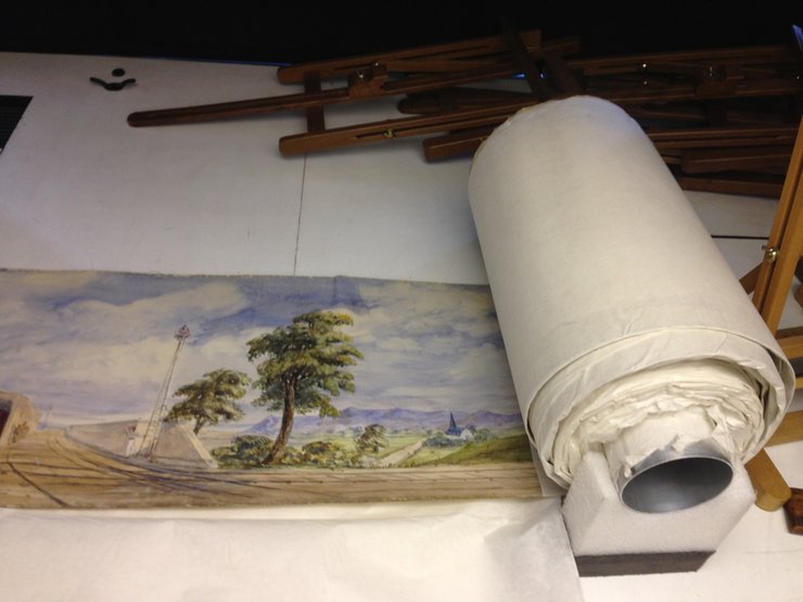 Акварельное полотно, написанное на бумаге и наклеенное на шелк, было размещено на двух барабанах. Лэмб устраивал его двухчасовую демонстрацию, сопровождаемую "остроумными" рассказами об экзотических странах.