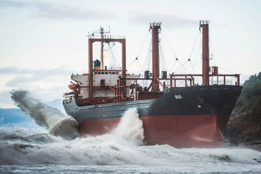 По предварительным данным капитан теплохода "Rio" запросил буксировку для прохода в порт, однако из-за сильного волнения на Черном море, дождя и ветра - буксиры не смогли выйти к судну.