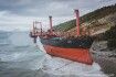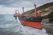 Когда корабль попытался сам подойти к порту, то его отнесло штормом и выбросило на берег.